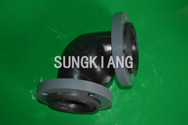 上海静福减震器厂生产的化工厂专用PVC法兰耐酸碱橡胶弯头,法兰采用优质耐酸碱PVC制成,中间橡胶管体采用优质进口耐酸碱橡胶经过高温硫化而成,两..的结合在了.起,有着非常好的耐酸碱性能,在化工厂和污水处理厂被广泛使用。